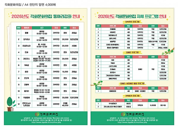 26년도 동아리활동 및 프로그램 안내 페이지 정보 작성자 정관용 작성일26-01-16 17:02 조회844회 댓글0건 이전글 다음글 목록 본문 26년도 동아리 전체 활동 안내 및 프로그램 안내합니다. 이전글 다음글 목록